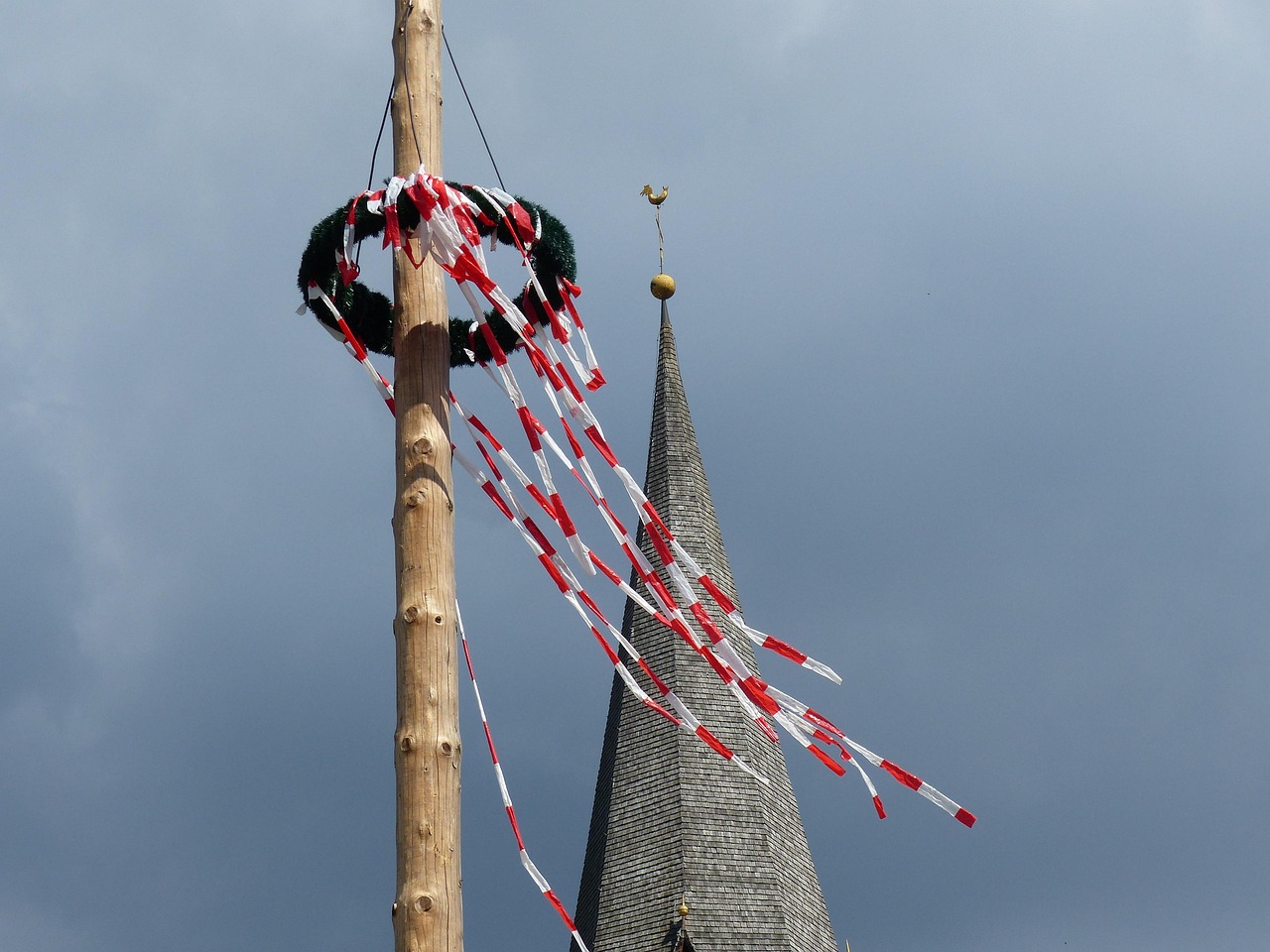 In sommige dorpen verschijnt er ineens een hoge stam op het plein, versierd met linten of groen. In andere